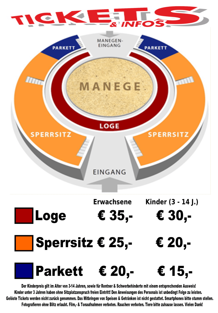 An Vorstellungstagen ist unsere Circuskasse von 10-12 Uhr und 1 Stunde vor Beginn für Sie geöffnet !
